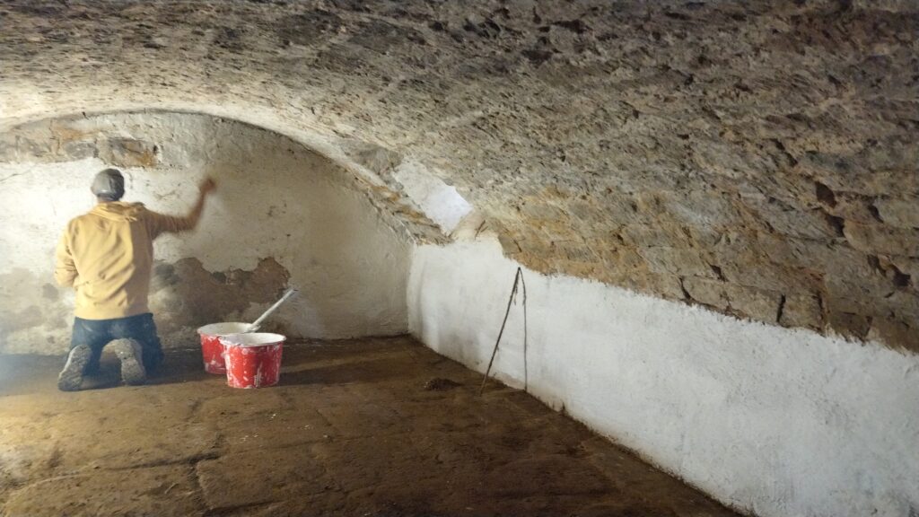 In der vergangenen Woche, haben wir den Keller für die bevorstehende Ernte vorbereitet und den unteren Teil sowie Seitenwände mit Kalk geweißelt. Eine effektive Methode da die Kalkfarbe feuchtigkeitsregulierend, und desinfizierend wirkt. Der hohe pH.Wert von Kalk bekämpft Bakterien und Schimmel, sodass sich diese nicht ansiedeln können. Er ist atmungsaktiv, Geruchsneutralisierend und Schadstofffrei.