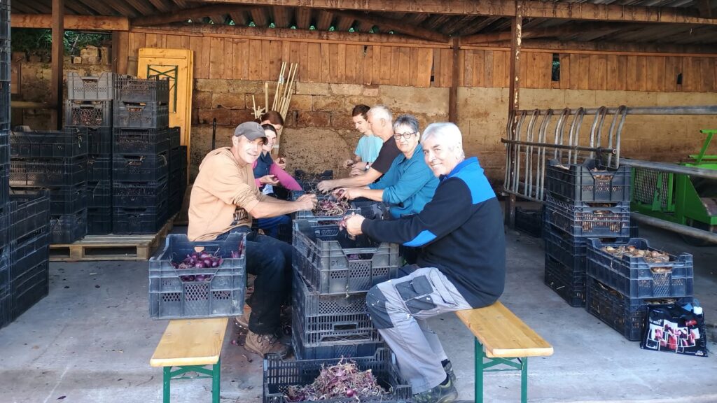 Beim Mit-Mach-Termin vergangenen Samstag waren 7 Mitmachende zum Zwiebeln sortieren gekommen,