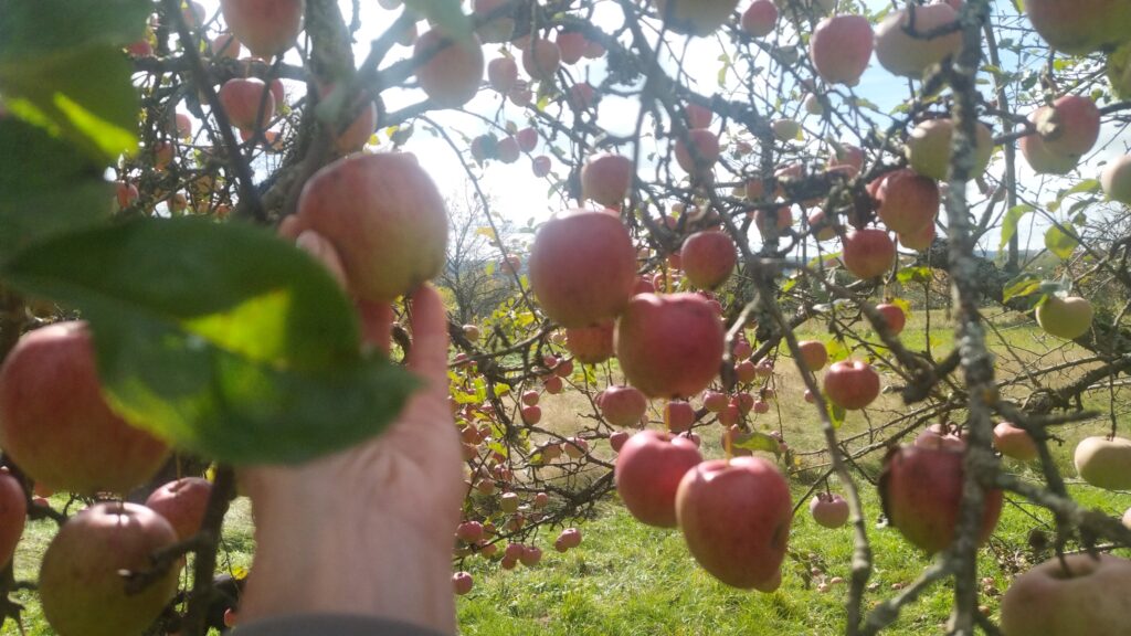 seit einigen Wochen befinden wir uns in der Apfelsaison, hin und wieder gibt es daher auch Äpfel bei der Abholung, welche wir liebevoll für euch von den Bäumen pflücken.
