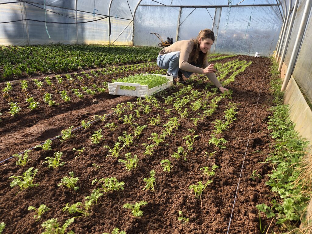 Jedes Jahr haben wir drei Durchgänge mit verschiedenen Kulturen im Folientunnel.